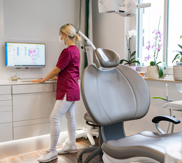 Zu einem entspannten Besuch beim Zahnarzt gehört eine angenehme Atmosphäre. Eine moderne Praxiseinrichtung, das komfortable Wartezimmer und bequeme Behandlungsstühle sorgen für größtmögliche Entspannung vor und während der Behandlung. Entdecken Sie unsere Praxiseinrichtung und Ausstattung.
